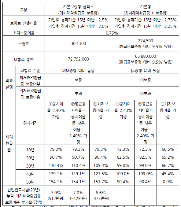 | 구분 | 기본보장형 플러스 (최저해약환급금 보증형) |