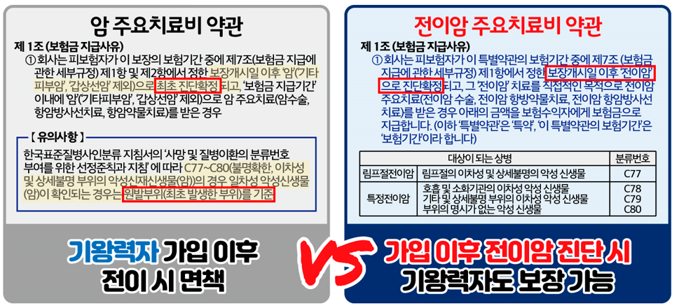 어쩌면 당연하다고 볼수 있지만 자세히 본다면 조금은 다를 수있어요. 왜냐면 기본적으로 진단비등은 보험가입이후 최초로 암에 진단이 된것을 보장하고, 보통 전이암도 동일하게 가입한이후에 새롭게 진단된 암이 전이되었을경우가 보장이 되는것이었기 때문이죠.