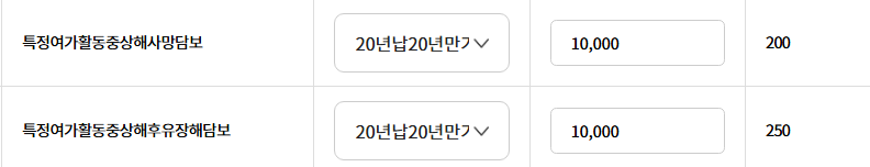 | 특정여가활동중상해후유장해 | 1억 | 250원 |