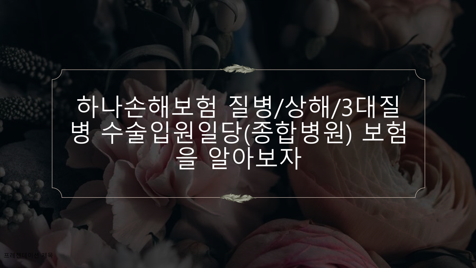 하나손해보험 질병/상해/3대질병 수술입원일당(종합병원) 보험에 대해서 몇 가지 알아야 할 사항들을 알아보죠.