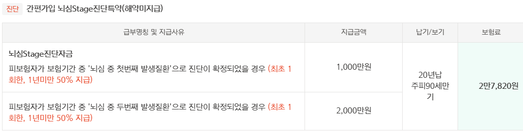 한화생명 뇌심Stage진단특약 보험 특징