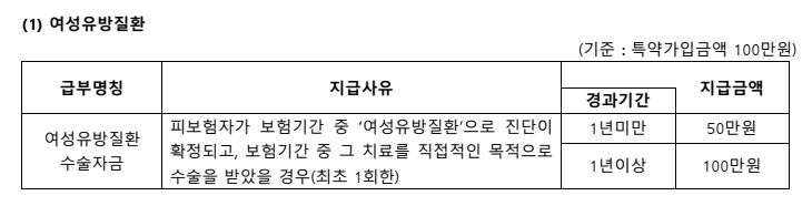- 보장: 유방·부인과 7개 파트 개별 지급