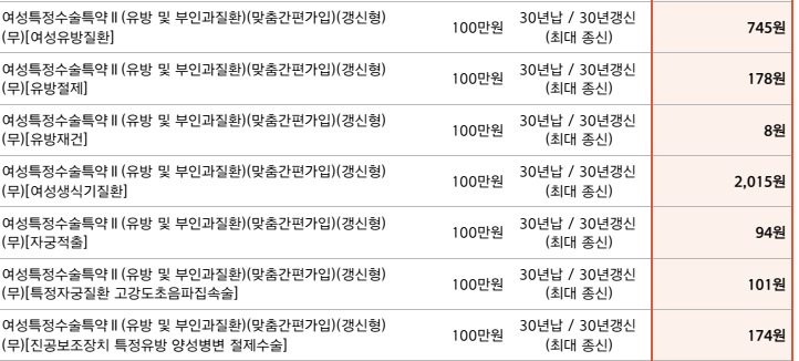 여성특정수술특약 Ⅱ (유방·부인과질환) 보험 정보