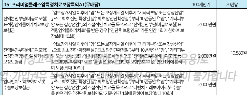 - 보장 대상: 전액본인부담(비급여 포함) 표적항암 · 특정면역항암 · 로봇수술(다빈치·레보아이)