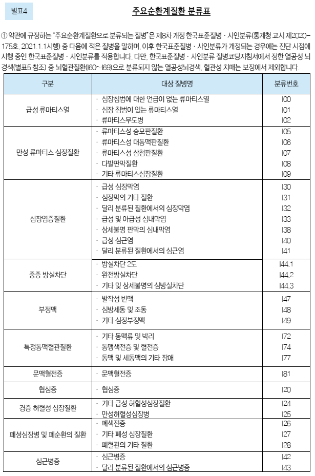 약관상 뇌출혈·급성심근경색 분류표 및 주요순환계질환 분류표가 제시되어 있습니다. 다만 부정맥 계열 보장 항목이 확인되지 않으며, 타사 일부 상품은 부정맥/뇌경색 등을 포함하는 반면 본 특약은 상대적으로 보장 스펙이 좁은 편이라는 점을 유념해야 합니다.