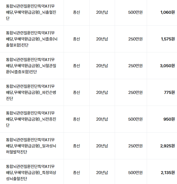 - 보장 항목: 뇌출혈 · 뇌졸중 · 뇌혈관질환 · 파킨슨병 · 뇌전증 · 일과성 뇌허혈발작 · 특정 외상성 뇌출혈