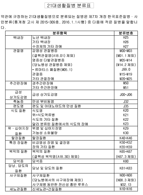 한국표준질병·사인분류의 [별표-질병 관련 15] 21대 생활질병 분류표에 해당하는 질병을 의미.
