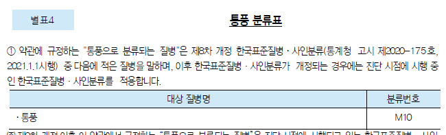 | 통풍 | 약관의 분류표 해당 진단확정 | 최초 1회 |