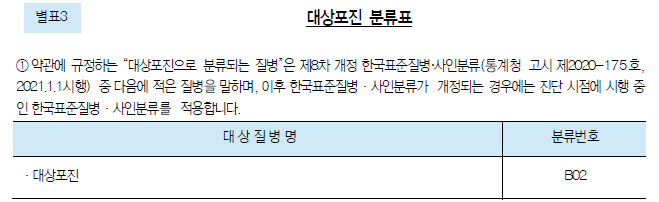 정의/진단확정 : 별표 3(대상포진 분류표) 해당 진단 시 지급.