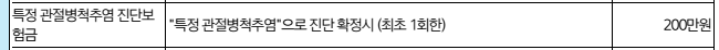 | 특정 관절병척추염 | 약관 별표4 해당 진단 확정 | 영상/혈액검사 등 |