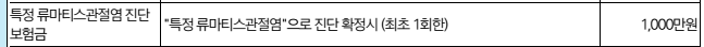 | 특정 전신결합조직장애 | 약관 별표7 해당 진단 확정 | 자가면역 표지자 등 |