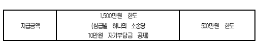 - 지급한도: 변호사비 최대 1,500만 원, 인지대·송달료 최대 500만 원