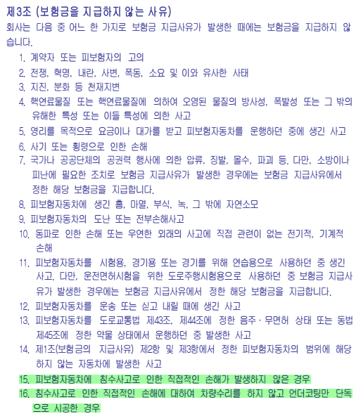 | 보상 제외 | 침수 수리 없이 언더코팅만 시공한 경우 등 약관 면책 사유 |