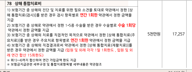 메리츠화재에서 가입이 가능한 상해 보장 중 가장 최근에 나온 상해 통합치료비 보험은 상해 관련 담보 가운데 보장 조건이 넓은 편입니다. 검사·수술·주요치료·재활치료로 나누어 보장받을 수 있으며, 운전자보험에서도 가입이 가능하기 때문에 병력이 어느 정도 있어도 다건 보험금 청구 이력만 없다면 가입이 어렵지 않게 가능합니다.