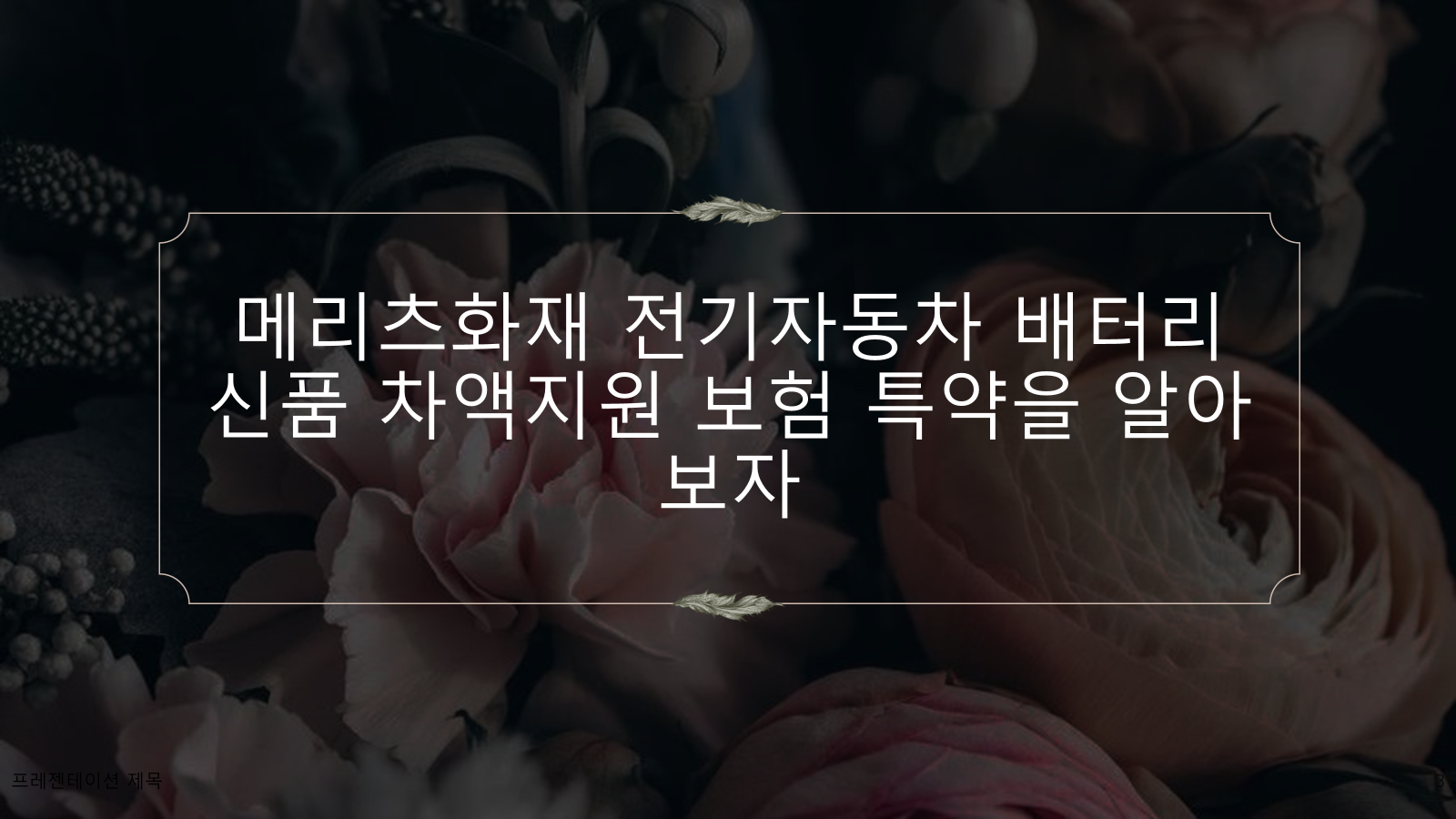 메리츠화재 전기자동차 배터리 신품 차액지원 보험 핵심 포인트