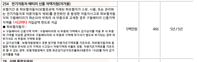 이 특약은 자동차사고로 전기 자동차의 구동배터리가 파손되어 새 부품으로 교체한 경우, 신품가액의 차액을 가입금액 한도로 보상해 주는 구조입니다.