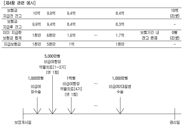 다만 잔고가 남아있는 경우, 이 특별약관이 갱신될 때마다 「보험가입금액」도 10억으로 재설정(리셋)됩니다.