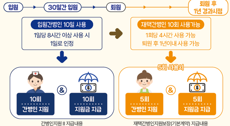 2. 퇴원 후 1년 이내 기간 동안 재택간병인 요청 가능.