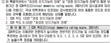 ※ 치매CDR척도검사(급여)는 그 검사 결과를 기초로 "치매"로 진단확정된 경우를 포함하며, "치매"로 진단확정 되지 않은 경우에는 보험금을 지급하지 않습니다.