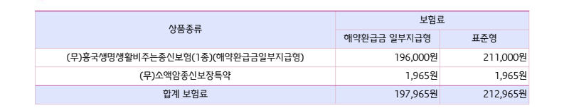 | 표준형 | 212,965원 | 초기부터 환급금 존재 / 보험료 가장 높음 |
