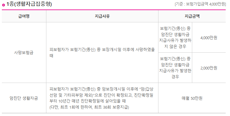 - 생활자금 집중형: 158,372원 (사망보험금 4,000만원 / 암생활비 50만원)