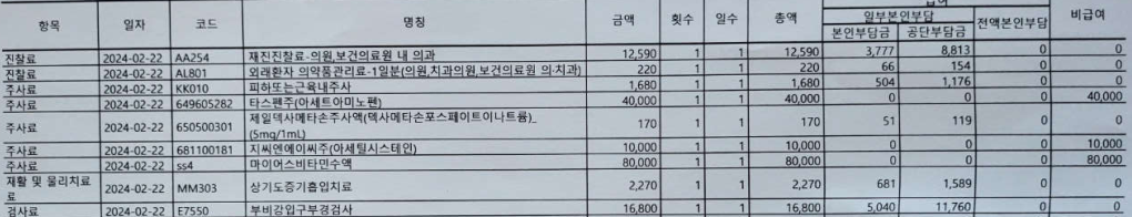 같은 이치로 비타민제를 수액 맞은 것은 치료 목적이라고 보기 어려운 경우가 많습니다. 따라서 이경우 적절한 치료 목적으로 사용이 되었는지를 의사한테 확인을 받아야 합니다.