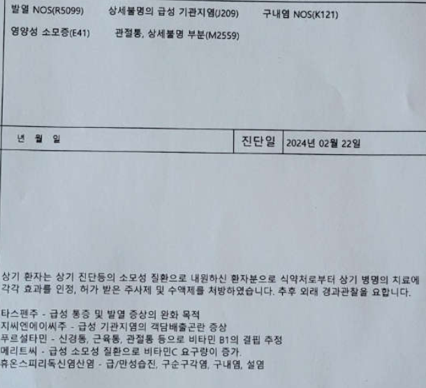 진료비 세부내역서상 비타민수액등이 확인이 되었으니 소견서를 받아야겠죠. 의사가 소견서를 써주는 모습은 여러 경우지만 위와 같은 경우는 정석적인 모습이라고 생각하시면 되겠습니다.